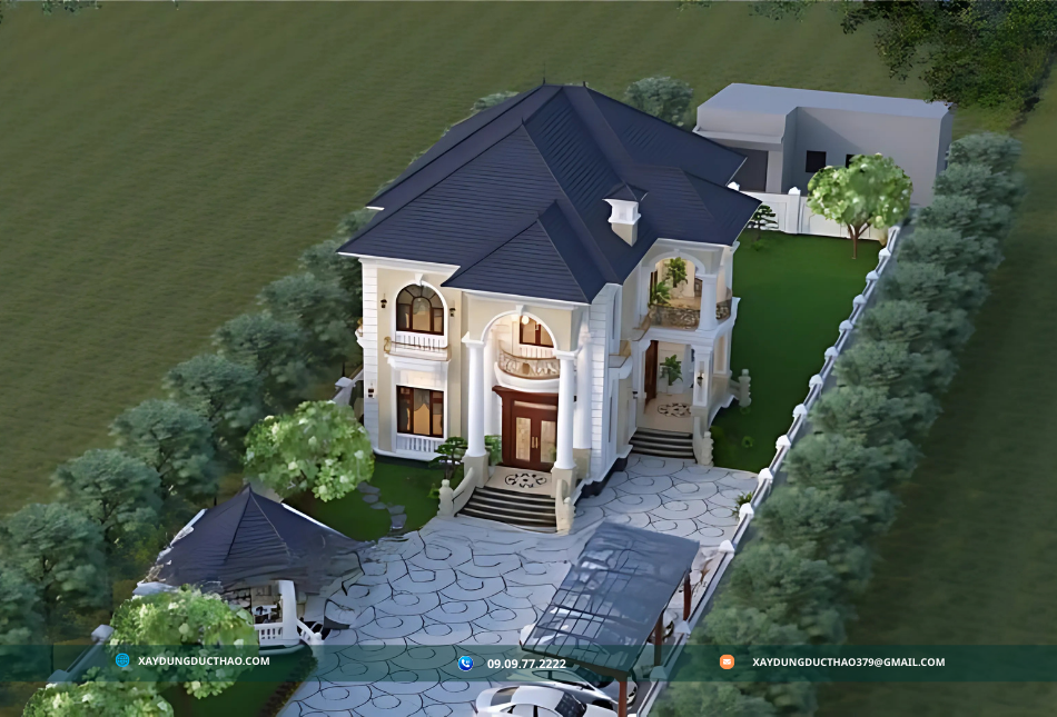 Mẫu thiết kế biệt thự tân cổ điển của công ty xây dựng đức thảo là một Kiến trúc tân cổ điển là sự kết hợp tinh tế giữa phong cách cổ điển và hiện đại, mang lại vẻ đẹp sang trọng và tinh tế cho ngôi biệt thự. Các đặc điểm nổi bật của phong cách này bao gồm: mặt tiền đối xứng, cửa sổ lớn, mái nhà cong vút, sử dụng các vật liệu cao cấp như đá tự nhiên và gỗ quý. Kết hợp với không gian xanh và các tiện ích hiện đại, biệt thự tân cổ điển mang lại sự sang trọng, tinh tế và đẳng cấp cho chủ nhân.