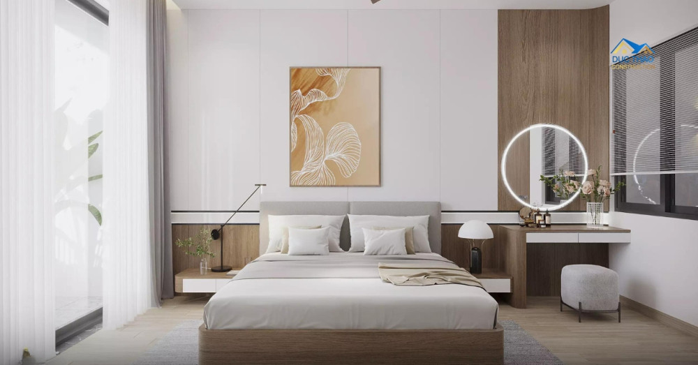 Để tạo nên một không gian sống đẳng cấp, Đức Thảo đã tỉ mỉ lựa chọn các vật liệu xây dựng và nội thất cao cấp. Từ sàn gỗ ấm cúng mang lại cảm giác dễ chịu khi bước chân, đến gạch ốp lát sang trọng và bền bỉ, từ hệ thống chiếu sáng thông minh tạo hiệu ứng ánh sáng đa dạng, đến các thiết bị vệ sinh hiện đại và tiện nghi, mỗi chi tiết đều được cân nhắc kỹ lưỡng để đảm bảo tính thẩm mỹ, độ bền và sự tiện nghi tối đa. Nội thất được thiết kế theo phong cách hiện đại, tối giản nhưng vẫn toát lên vẻ tinh tế, sang trọng. Sự kết hợp hài hòa giữa màu sắc, ánh sáng và vật liệu tạo nên một không gian sống ấm cúng, tiện nghi và đầy cảm hứng. Mỗi không gian đều mang dấu ấn của người ở – giản dị, sâu sắc và không chạy theo xu hướng. Đó cũng chính là tinh thần mà Đức Thảo luôn theo đuổi trong các dự án: Thiết kế để chạm đến lối sống và cá tính của từng gia chủ.