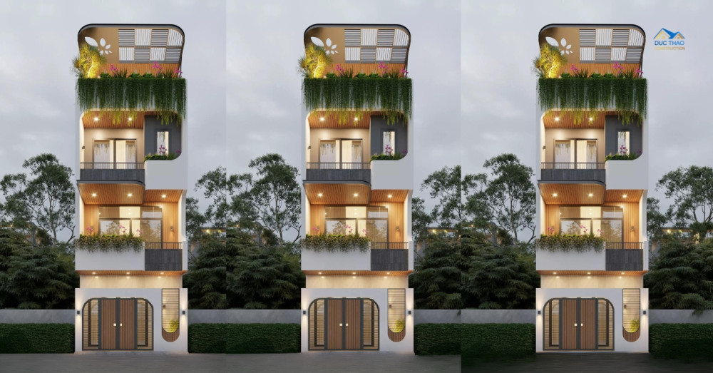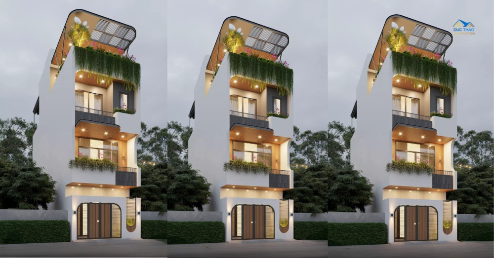 Ở các tầng trên, ban công được thiết kế hợp lý, không chỉ giúp công trình hài hòa với thiên nhiên mà còn tạo điểm nhấn kiến trúc độc đáo, tăng thêm sự thông thoáng và ánh sáng tự nhiên cho không gian bên trong. Mảng xanh này mang đến cho người ở cảm giác thư thái mỗi khi bước ra ban công, đồng thời tăng cường sự riêng tư cho khu vực phòng ngủ phía trong. Mỗi không gian đều mang dấu ấn của người ở – giản dị, sâu sắc và không chạy theo xu hướng. Đó cũng chính là tinh thần mà Đức Thảo luôn theo đuổi trong các dự án: Thiết kế để chạm đến lối sống và cá tính của từng gia chủ.