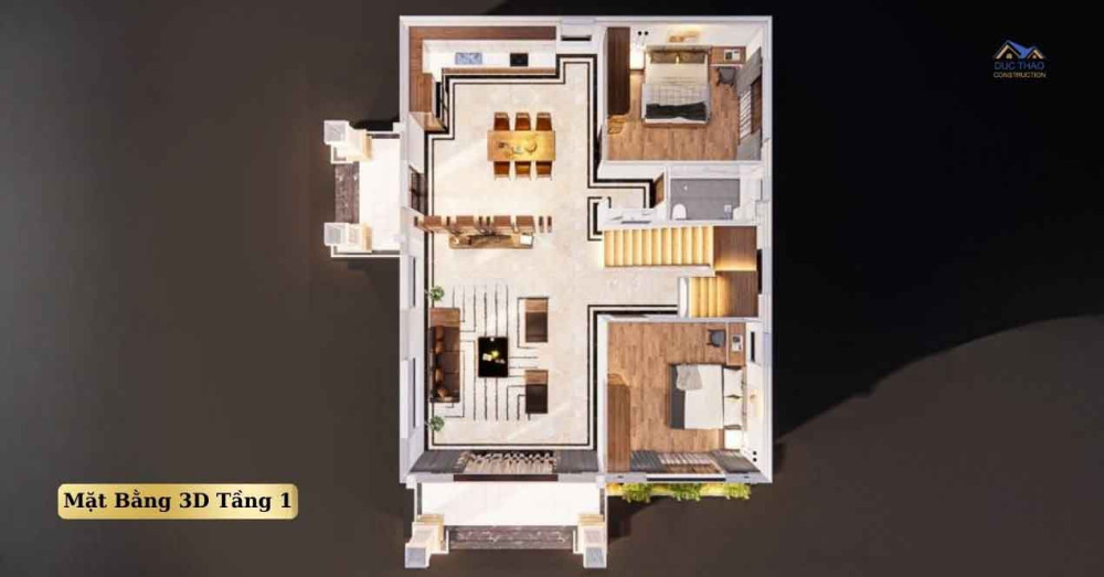3D mặt bằng nội thất trệt và lầu 1