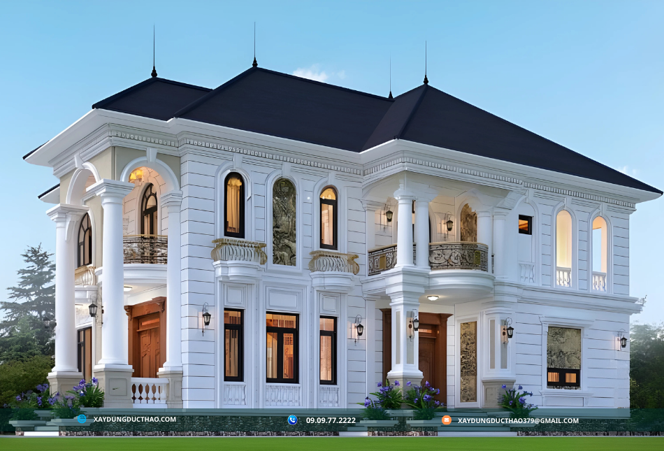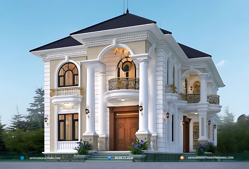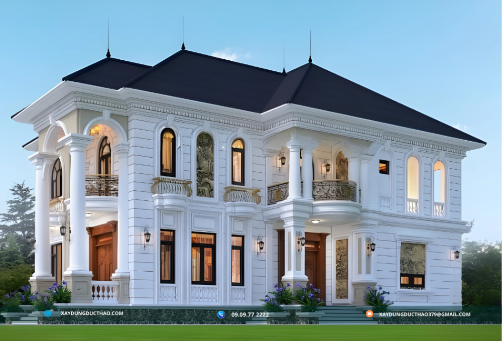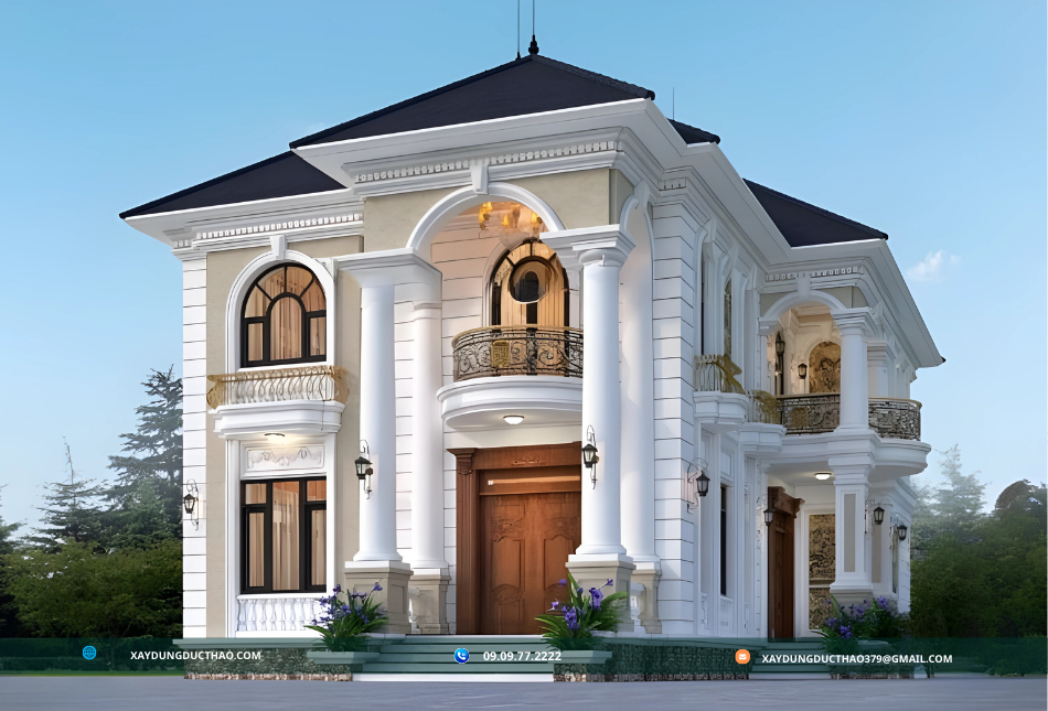 Biệt thự tân cổ điển mái Nhật của công ty xây dựng đức thảo là sự kết hợp hoàn hảo giữa tinh hoa của kiến trúc cổ điển và những đường nét hiện đại, mang đến một không gian sống đầy sang trọng và tiện nghi. Loại hình kiến trúc này thừa hưởng vẻ đẹp quý phái và thanh lịch từ phong cách cổ điển, đồng thời tích hợp các yếu tố chức năng và tối ưu hóa không gian theo xu hướng hiện đại. Thiết kế mái Nhật đặc trưng với độ dốc nhẹ, giúp tận dụng tối đa ánh sáng tự nhiên và khả năng thoát nước tốt, rất phù hợp với điều kiện khí hậu ở Việt Nam. Ngoài ra, biệt thự tân cổ điển mái Nhật còn tôn vinh vẻ đẹp bền vững qua thời gian, giúp nâng tầm đẳng cấp và gu thẩm mỹ của chủ nhân, trở thành lựa chọn lý tưởng cho những ai tìm kiếm sự hoàn mỹ trong cả thiết kế và công năng sử dụng.