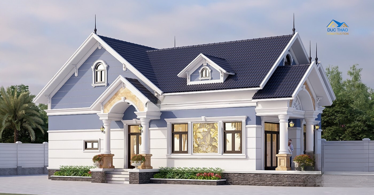 Nhà cấp 4 mái Thái do Công Ty Thiết Kế Và Xây Dựng Đức Thảo thiết kế nổi bật với các đặc điểm kiến trúc sang trọng và tinh tế. Mái Thái, với hình dáng dốc nghiêng và thanh thoát, không chỉ tạo nên vẻ đẹp thanh lịch mà còn hiệu quả trong việc quản lý nước mưa và điều hòa nhiệt độ, giúp ngôi nhà luôn mát mẻ và khô ráo. Các chi tiết ngoại thất như phào chỉ tinh tế và cửa sổ lớn làm tăng sự thông thoáng và ánh sáng tự nhiên. Bên trong, thiết kế không gian mở kết nối liền mạch giữa phòng khách, phòng bếp và phòng ăn, tạo sự thoải mái và thuận tiện cho sinh hoạt gia đình. Đức Thảo cam kết mang đến một ngôi nhà cấp 4 mái Thái không chỉ đẹp mắt mà còn tối ưu hóa công năng và chất lượng sống.