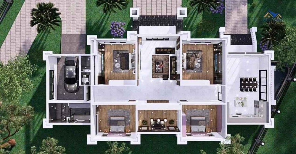 Bên cạnh đó, lựa chọn vật liệu trong xây dựng ngôi nhà cũng đóng vai trò quan trọng. Ngôi nhà cấp 4 mái Thái hiện đại thường sử dụng gỗ tự nhiên hoặc gỗ công nghiệp trong việc xây dựng và trang trí. Những loại gỗ này mang đến một cảm giác ấm cúng và tạo nên sự kết nối với thiên nhiên. Ngoài ra, vật liệu này cũng giúp tạo ra một không gian mát mẻ, đặc biệt trong những ngày hè oi bức.Sự thoáng mát không chỉ tồn tại trong kiến trúc bên ngoài của ngôi nhà, mà còn trong nội thất. Từ việc chọn màu sắc nhẹ nhàng và tươi sáng cho tường và nền nhà, cho đến việc bố trí cửa sổ lớn và đặt các cây xanh trong nhà, tất cả các yếu tố này đều tạo nên một không gian sống thoáng đãng và đầy sức sống.