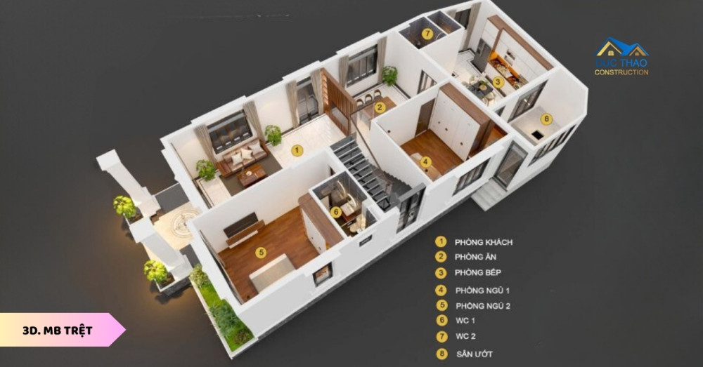 II . Mặt Bằng 3D Nội Thất Biệt Thự Mái Nhật Sân vườn