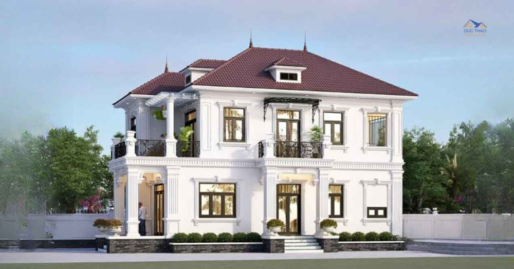 3D Mẫu Biệt Thự Mái Nhật 2 Tầng Tân Cổ Điển