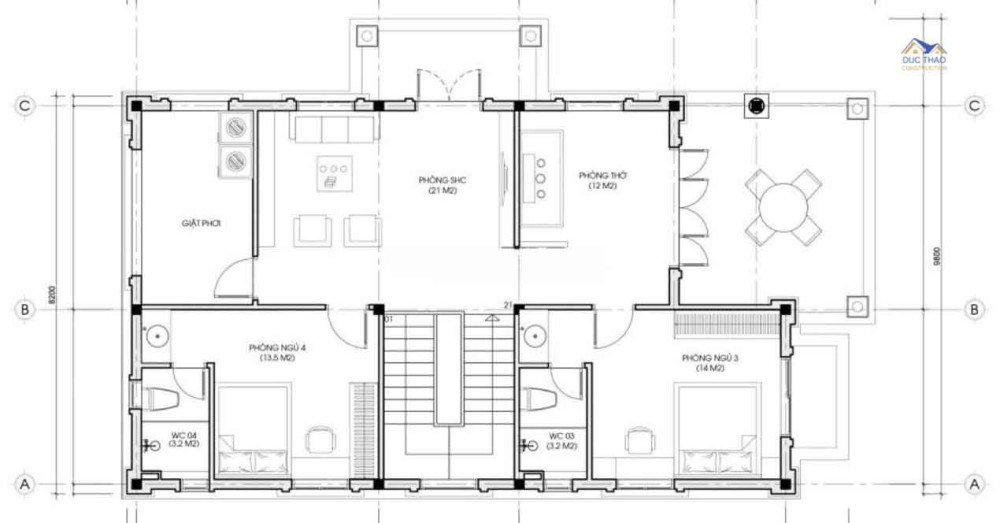 Mặt bằng bố trí công năng tầng 2