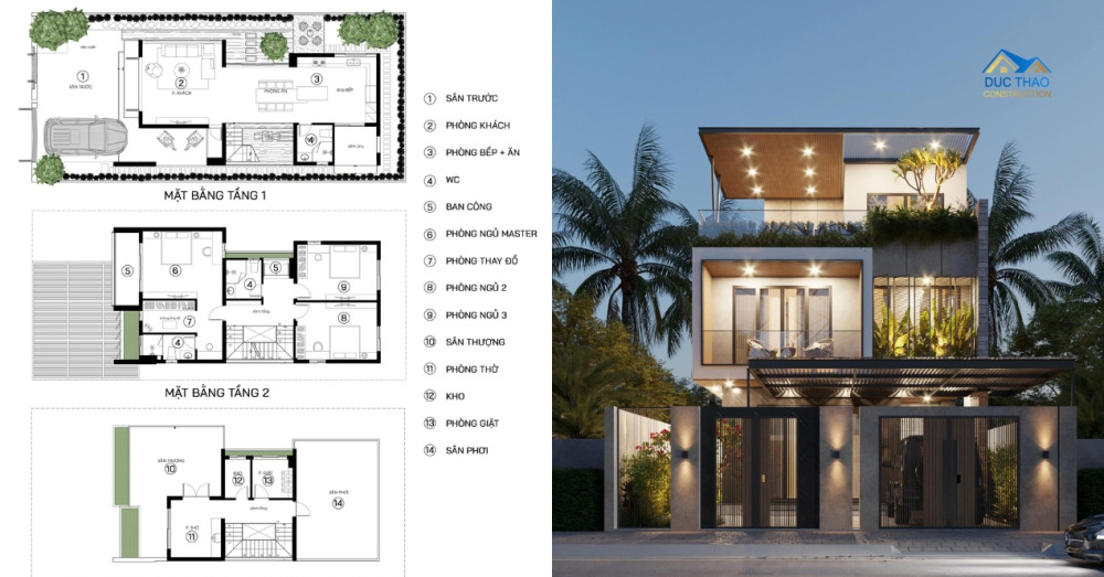 3D Ngoại Thất Mẫu biệt thựu hiện đại 3 tầng