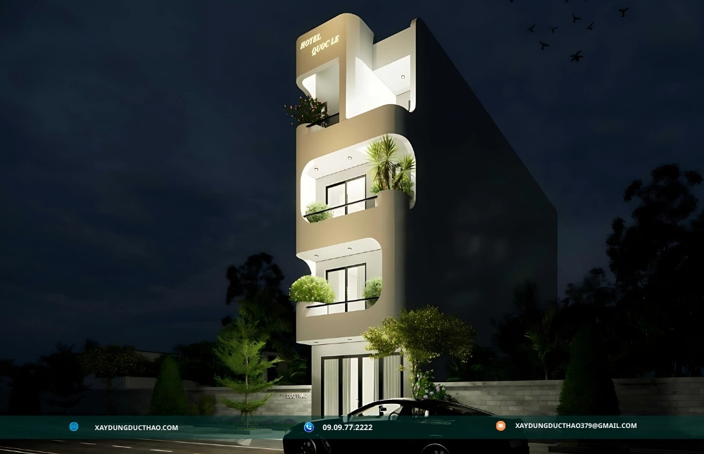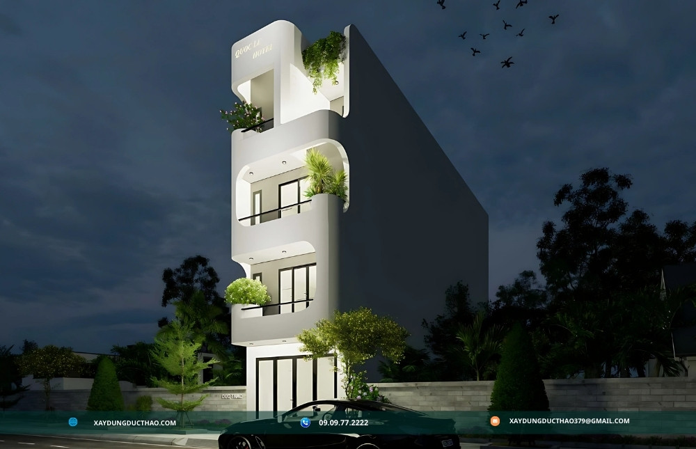 Mẫu thiết kế nhà phố 4 tầng từ công ty thiết kế và xây dựng Đức Thảo chính là biểu tượng của sự hoàn hảo và tinh tế. Mặt tiền nổi bật với các chi tiết vòm cong tinh tế, tạo cảm giác mềm mại, thanh lịch và hiện đại. Kết hợp cùng màu sắc trung tính và hệ cửa kính lớn, ngôi nhà đón ánh sáng tự nhiên tối đa và tạo hiệu ứng mở rộng không gian. Đây là xu hướng kiến trúc đang rất được ưa chuộng trong các khu đô thị.