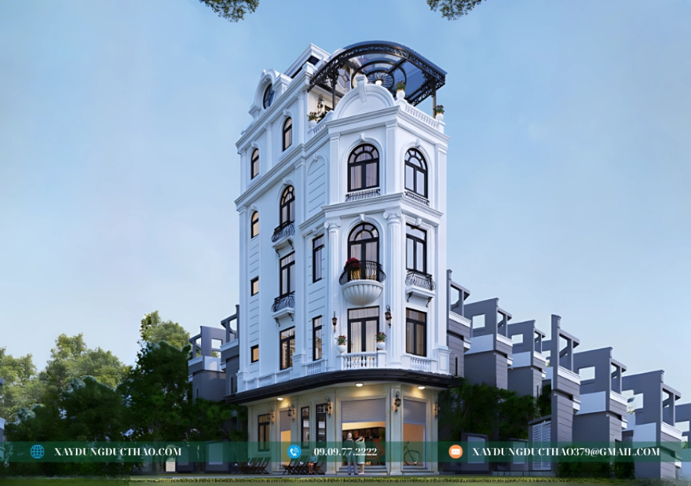 Mẫu nhà phố 2 mặt tiền 5 tầng tân cổ điển không chỉ đáp ứng nhu cầu về một không gian sống tiện nghi mà còn khẳng định gu thẩm mỹ tinh tế của gia chủ. Với kinh nghiệm và uy tín trong ngành, công ty thiết kế và xây dựng Đức Thảo tự hào mang đến những giải pháp kiến trúc tối ưu, biến ước mơ về ngôi nhà hoàn hảo của bạn thành hiện thực.