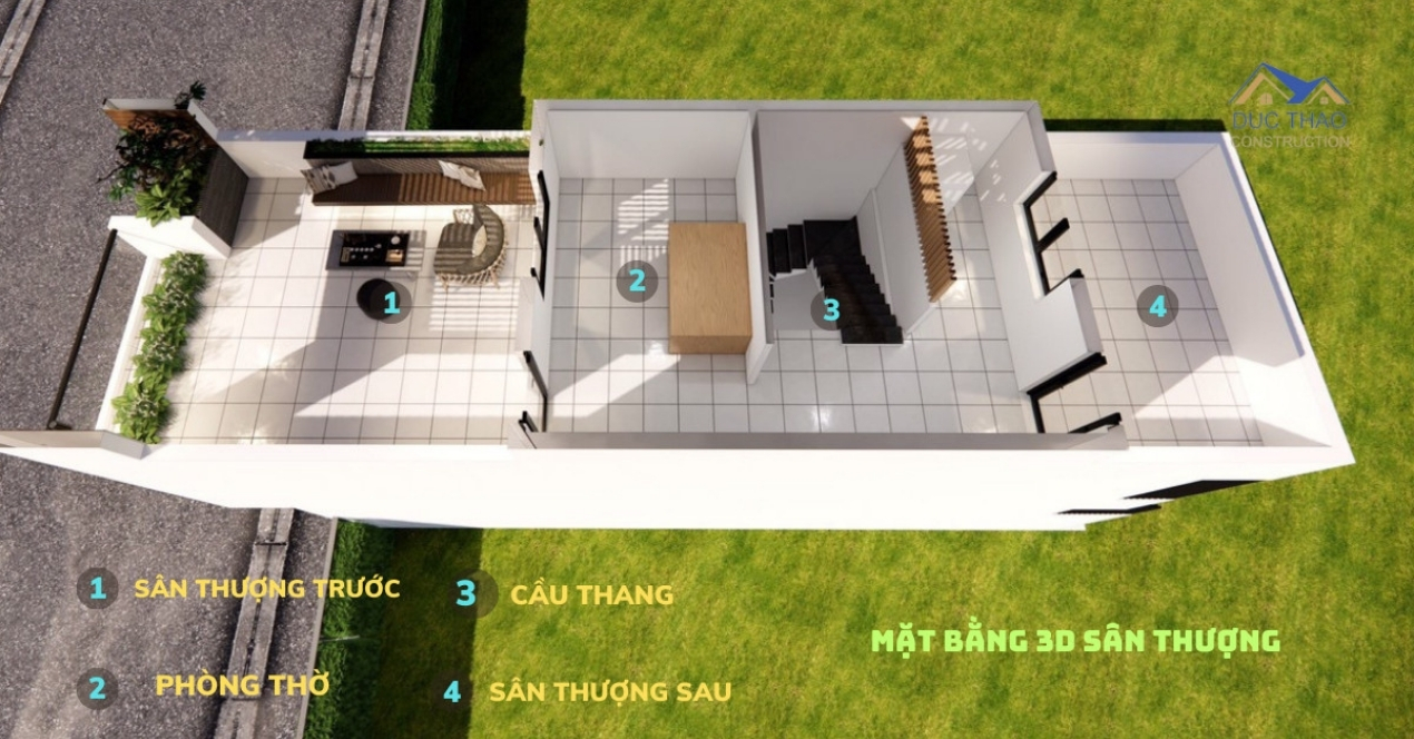 | Tầng 3 | 1 phòng thờ + 1 phòng giặt + ban công + sân thượng trước sau |