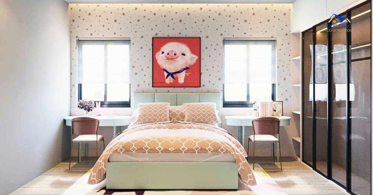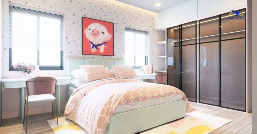 Tầng trên lầu, chủ nhân có thể tận hưởng không gian riêng tư với phòng ngủ và phòng tắm riêng. Phòng ngủ được thiết kế sang trọng, đảm bảo sự thoải mái và giấc ngủ ngon. Phòng tắm được trang bị đầy đủ thiết bị và tiện nghi, mang đến sự thoải mái và tiện lợi.