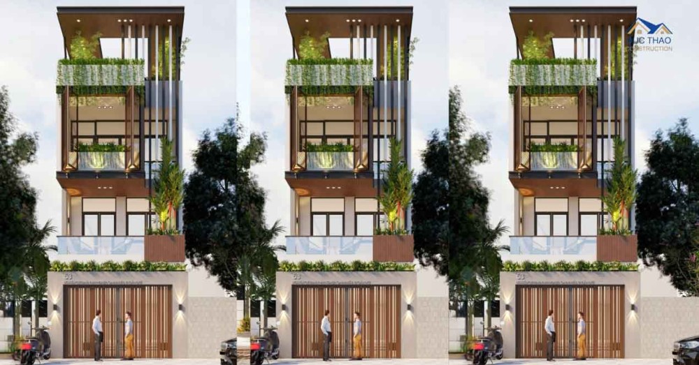 Bên cạnh đó, những không gian xanh như sân vườn hoặc các khu vườn nhỏ được bố trí tại các tầng trên giúp làm tăng tính thẩm mỹ và tạo ra khoảng không gian trong lành. Các khu vườn nhỏ có thể được bố trí trên ban công hoặc trong những không gian xanh ngoại vi của căn nhà, mang lại sự tươi mát và yên bình cho gia đình.