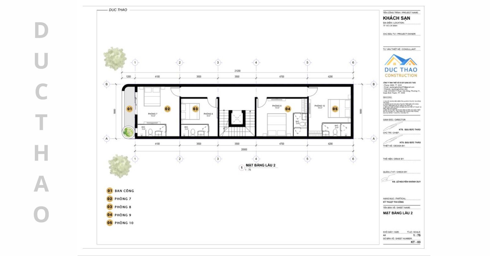 Với diện tích mặt bằng 5x16m, một kích thước khá phổ biến trong quy hoạch đô thị, đội ngũ kiến trúc sư của Công ty Đức Thảo đã thể hiện sự tinh tế và am hiểu sâu sắc trong việc bố trí công năng. Mỗi tầng đều được quy hoạch một cách tỉ mỉ, khoa học, không chỉ đảm bảo sự tiện nghi tối đa cho mục đích sinh hoạt gia đình mà còn mở ra tiềm năng kinh doanh vượt trội, mang lại giá trị sử dụng đa dạng cho chủ sở hữu.