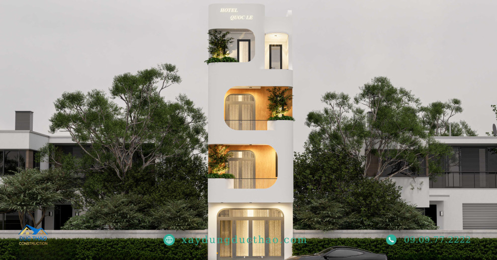 - Ban công ở mỗi tầng: Không chỉ là điểm nhấn kiến trúc, ban công còn giúp lấy sáng tự nhiên, tăng cường lưu thông không khí, mang lại không gian xanh mát và là nơi lý tưởng để thư giãn, ngắm nhìn phố phường.