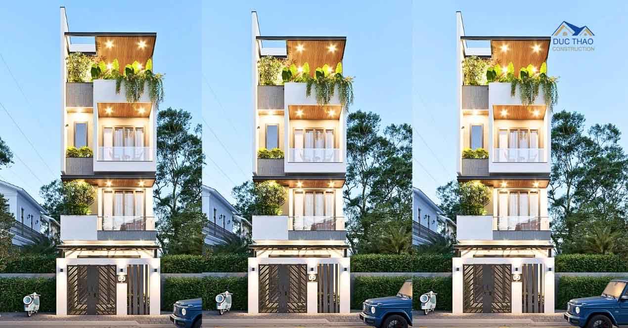 Mẫu Nhà Phố Hiện Đại 4 Tầng 3D Nội Ngoại Thất Công Trình