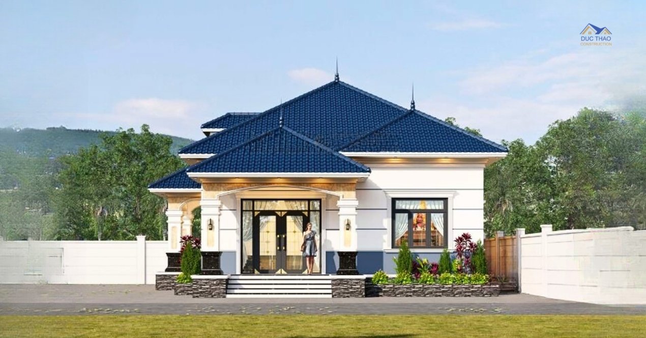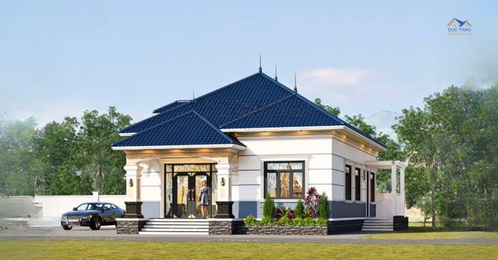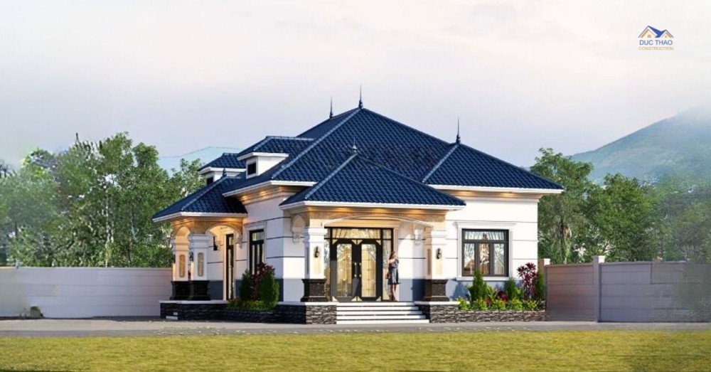 Thêm vào đó, sự kết hợp của công trình với mái Thái là một trong những điểm nhấn của mẫu nhà 1 tầng mái Thái đẹp. Điều này có tác dụng khiến cho không gian ngôi nhà thêm phần thoáng và rộng rãi hơn, phù hợp với điều kiện khí hậu nước ta, đặc biệt nó còn góp phần khẳng định giá trị cho mẫu nhà 1 tầng về giá trị thẩm mỹ cao trong không gian sống.