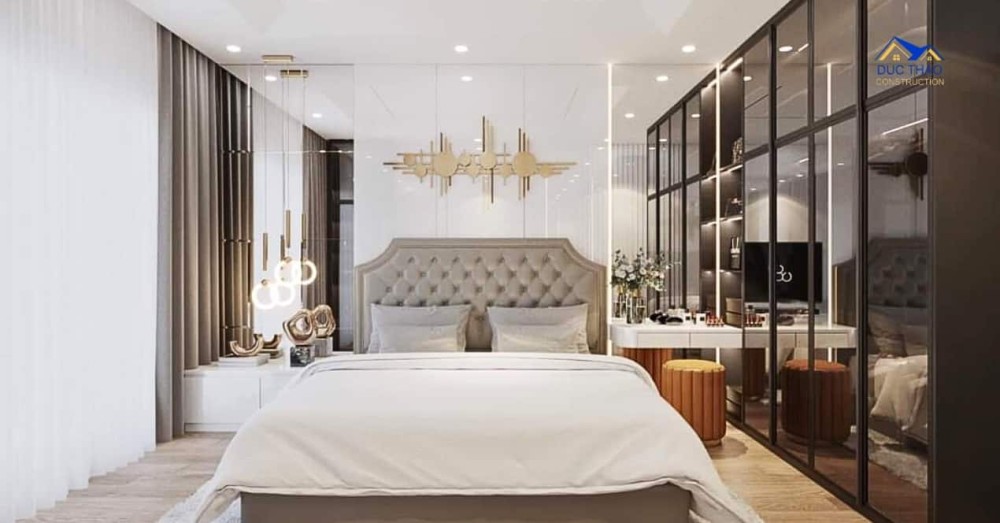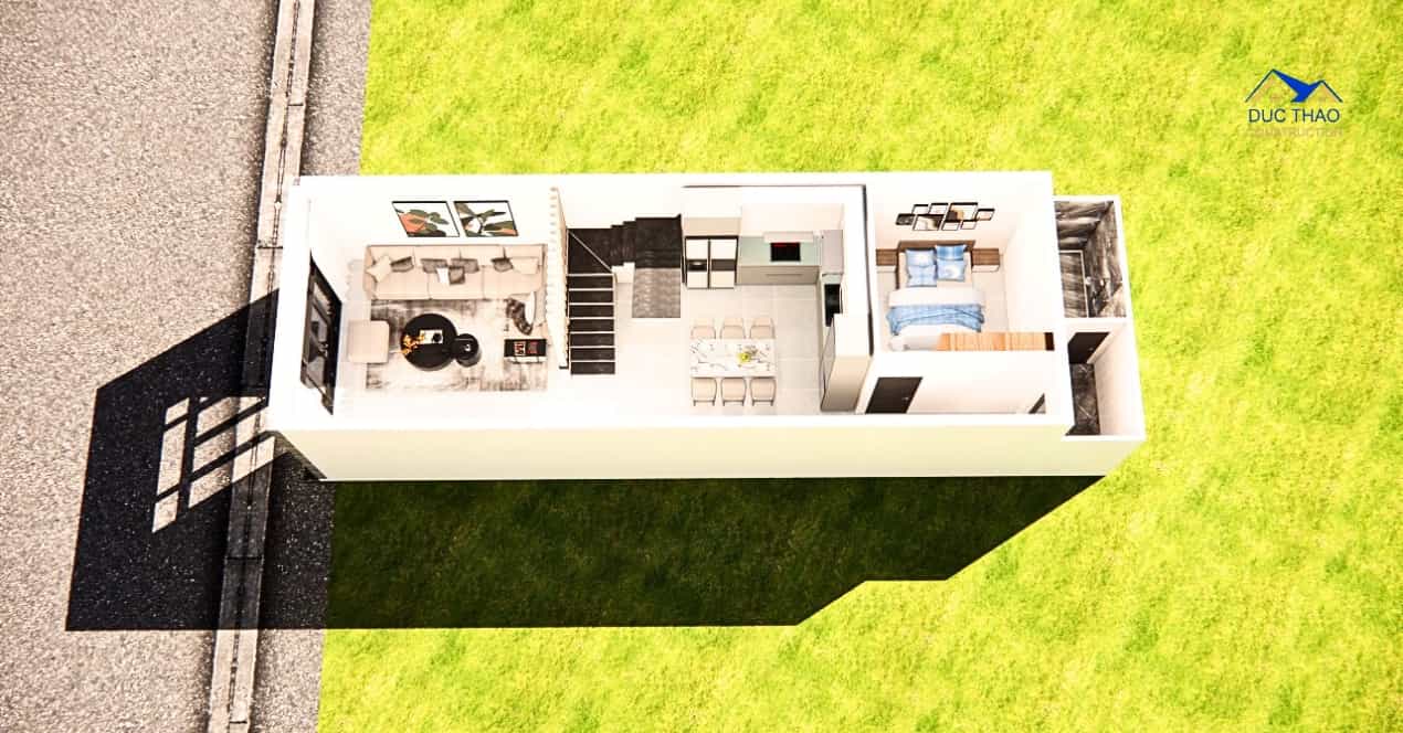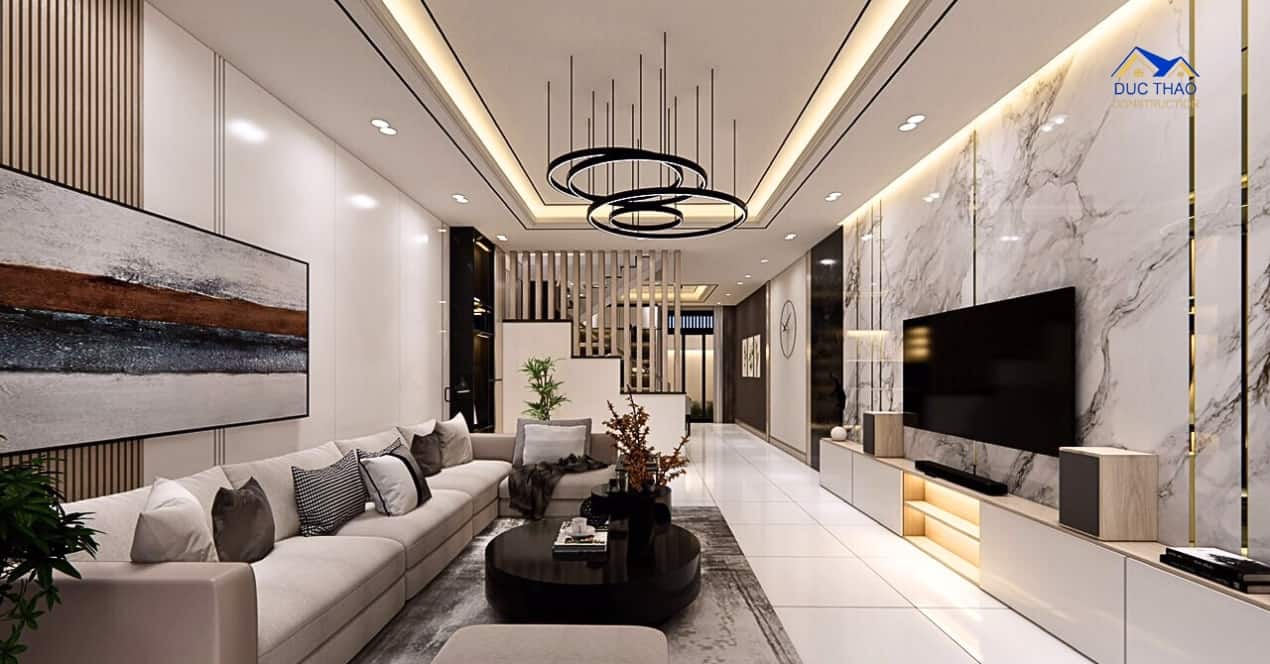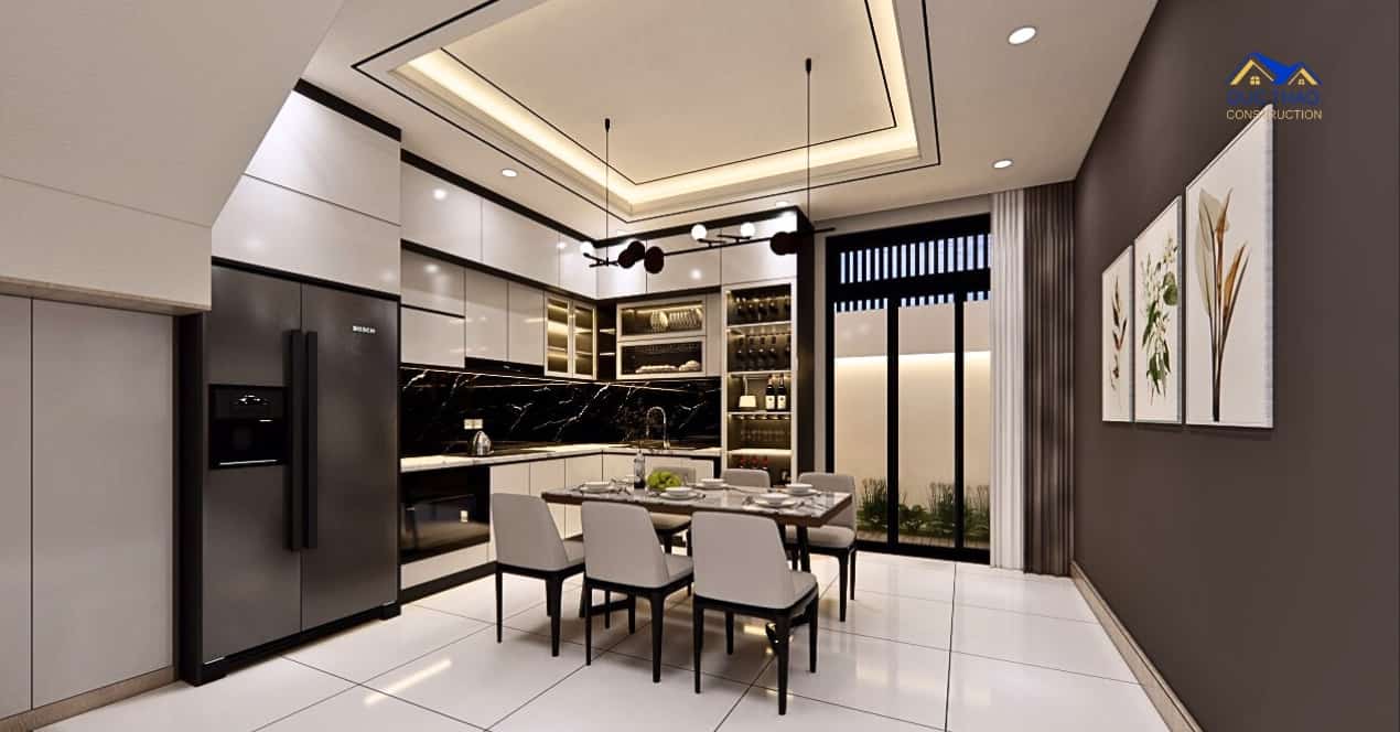Mở không gian: Một trong những đặc điểm quan trọng của thiết kế nhà phố hiện đại là sự mở rộng và liên kết giữa các không gian. Bạn có thể sử dụng kính và cửa sổ lớn để tận dụng ánh sáng tự nhiên và tạo cảm giác không gian mở rộng hơn. Thiết kế không gian sống sáng tạo và thông thoáng, kết hợp phòng khách, phòng ăn và bếp thành một không gian chung.