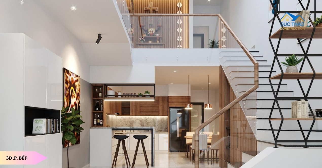 Thiết kế nội thất phòng khách và bếp hiện đại thường tập trung vào việc tối ưu hóa không gian và tạo ra môi trường sống thoải mái. Ánh sáng tự nhiên đóng vai trò quan trọng, với cửa sổ và kính lớn giúp kết nối không gian nội và ngoại thất, mang lại không khí tươi mới và thoáng đãng.Phòng Ngủ Sang Trọng: Trong phòng ngủ, sự thoải mái và sang trọng được đặt lên hàng đầu. Việc sử dụng đèn trang trí và ánh sáng nền mềm mại tạo nên không gian ấm cúng và thư giãn. Bố trí nội thất với các phụ kiện sang trọng, chất liệu cao cấp và màu sắc tinh tế làm tăng giá trị thẩm mỹ và thoải mái cho không gian riêng tư này. Phòng Tắm Hiện Đại: Phòng tắm hiện đại thường kết hợp giữa sự tiện nghi và thiết kế tinh tế. Sử dụng vật liệu cao cấp như kính, đá tự nhiên, và kim loại, kết hợp với đèn led tạo nên không gian sáng tạo và hiện đại. Các thiết bị vệ sinh thông minh và công nghệ tiên tiến giúp nâng cao trải nghiệm sử dụng và tạo điểm nhấn hiện đại cho phòng tắm.