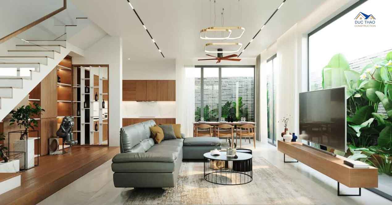 Ngôi nhà phố 2 tầng là một lựa chọn phổ biến cho những gia đình sống trong thành phố với diện tích hạn chế. Thiết kế tiện nghi và tối ưu không gian đóng vai trò quan trọng trong việc tận dụng được diện tích nhỏ mà vẫn đảm bảo sự thoải mái và tiện nghi cho cư dân.Một trong những yếu tố quan trọng của ngôi nhà phố 2 tầng là sự sắp xếp thông minh của không gian. Thiết kế mở với sự kết hợp giữa phòng khách, phòng ăn và bếp trên tầng 1 giúp tạo cảm giác rộng rãi và thông thoáng. Các cửa sổ lớn cũng được sử dụng để tận dụng ánh sáng tự nhiên, tạo cảm giác gần gũi với thiên nhiên và mở rộng không gian sống.