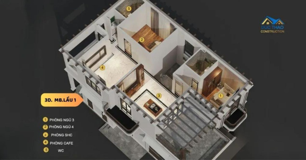 1.Tầng 1: Phòng khách: Là không gian đầu tiên khi bước vào biệt thự, phòng khách được đội ngũ thiết kế rộng rãi, thông thoáng và tràn ngập ánh sáng tự nhiên. Nội thất phòng khách sử dụng các chất liệu cao cấp, kết hợp giữa gỗ và đá, tạo nên một không gian tiếp khách sang trọng và ấm cúng.Phòng ăn và bếp: được thiết kế liền kề với phòng khách, tạo nên một không gian mở, thuận tiện cho việc sinh hoạt hàng ngày. Bếp ăn được trang bị các thiết bị hiện đại, đảm bảo tiện nghi và an toàn cho việc nấu nướng.Phòng ăn được bố trí gần cửa sổ lớn, cho phép ánh sáng tự nhiên tràn vào, tạo cảm giác thoải mái và dễ chịu.Phòng ngủ: Tầng 1 có một phòng ngủ, được thiết kế tiện nghi và thoải mái, phù hợp cho người lớn tuổi hoặc khách ở lại qua đêm. Phòng ngủ này đi kèm với một phòng vệ sinh riêng biệt, đảm bảo sự riêng tư và tiện lợi.
