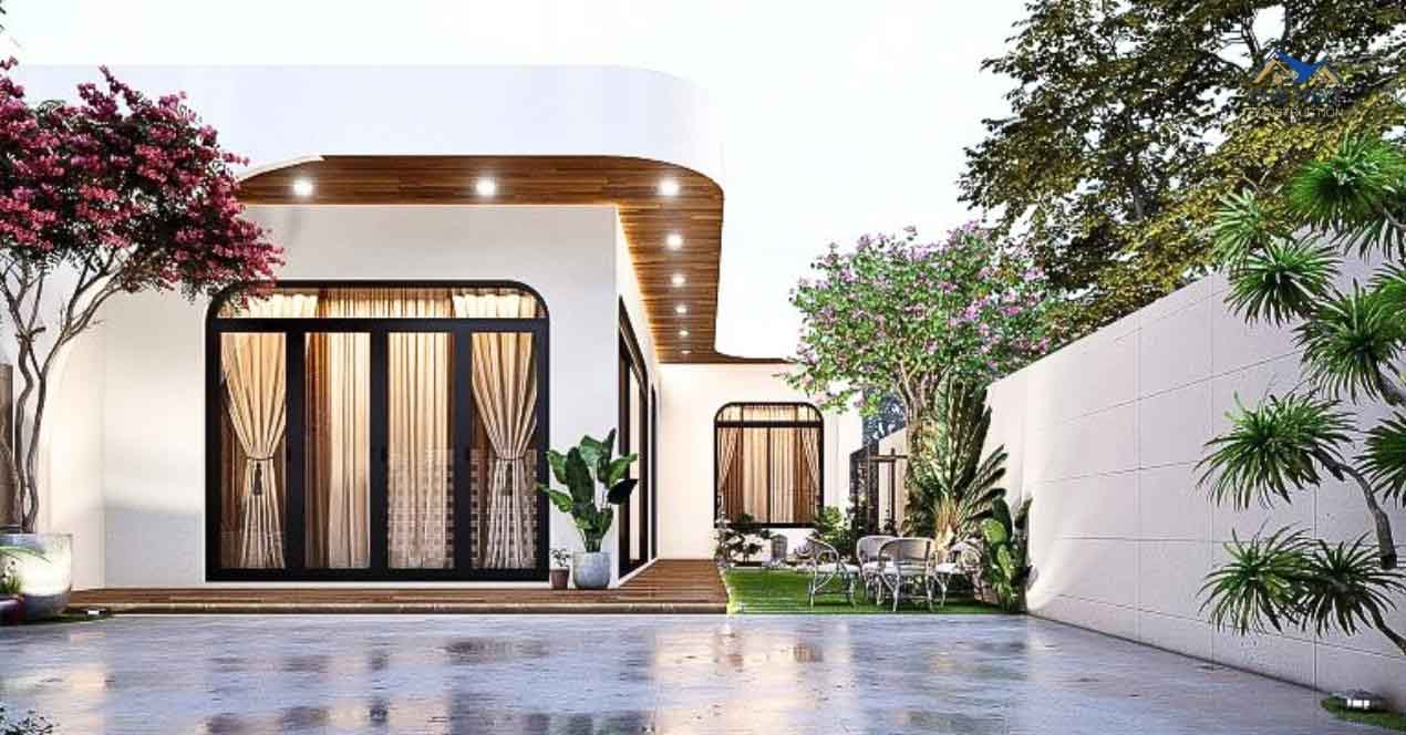 Nhà cấp 4 hiện đại là một kiểu kiến trúc phổ biến, tận dụng mức giá thiết kế, và phù hợp với nhiều đối tượng chủ nhà. Thiết kế nhà cấp 4 hiện đại tập trung vào sự đơn giản, thoáng mát và tinh tế, mang lại không gian sống tiện nghi và thoải mái cho gia đình. Để tạo sự thoáng đãng, một nhà cấp 4 hiện đại thường có cửa số và cửa ra vào lớn cho phép ánh sáng tự nhiên và không khí thông thoáng. Một lựa chọn thông minh để tăng cường ánh sáng tự nhiên là sử dụng cửa kính hoặc cửa sổ màu trắng trong suốt, tạo nên một không gian trong sáng và rộng lớn.