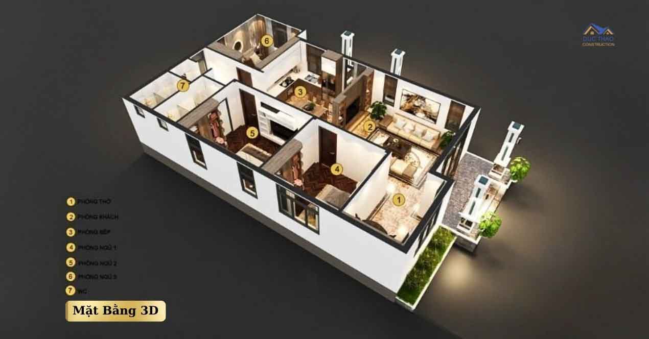 Không gian tiếp theo là khu vực phòng bếp có diện tích 22m2. Nhà vệ sinh chung cho cả căn nhà được đặt ở phía cuối được lắp đặt đầy đủ thiết bị vệ sinh hiện đại. Các không gian khác là 4 phòng ngủ rộng rãi, thoáng mát, đem lại bình yên cho mọi người khi nghỉ ngơi. Và thông tin bài viết trên hy vọng là mẫu nhà quý khách hàng yêu thích nếu cần hổ trợ tư vấn cụ thể hơn về mẫu nhà trên bạn hãy liên hệ cho chúng tôi qua hotlite .09.09.77.2222 . rất vui được tư vấn cho ngôi nhà tương lai của bạn .