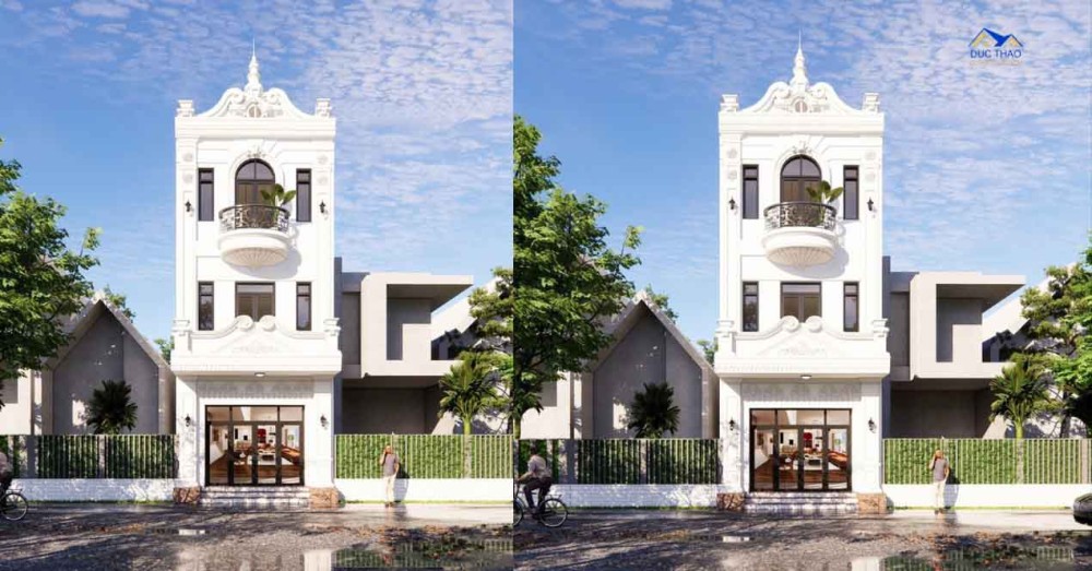 Nhà phố 3 tầng thiết kế theo phong cách tân cổ điển là sự kết hợp hài hòa giữa kiến trúc đương đại và yếu tố cổ điển, tạo nên một không gian sống đẹp mắt và sang trọng. Dưới đây là một mô tả chi tiết về ngôi nhà phố 3 tầng thiết kế theo phong cách tân cổ điển siêu đẹp: