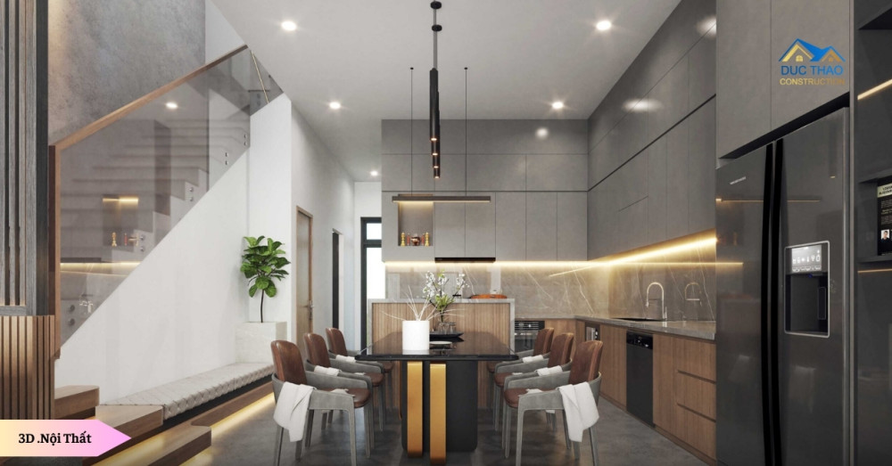 Nhà phố hiện đại ngang 6m của công ty xây dựng đức thảo là lựa chọn lý tưởng cho các gia đình có nhu cầu sở hữu một ngôi nhà với không gian sống đầy đủ tiện ích nhưng vẫn đảm bảo tính thẩm mỹ và tối ưu hóa diện tích. Thiết kế 3 tầng với các phòng chức năng được bố trí hợp lý, tạo nên một không gian sống hoàn chỉnh. Tầng 1 gồm phòng khách, phòng bếp và khu vực sinh hoạt chung; tầng 2 là các phòng ngủ và phòng tắm riêng tư; tầng 3 có thể linh hoạt thành phòng thờ, phòng làm việc hoặc sân thượng xanh mát. Đặc biệt, ngôi nhà tận dụng tối đa ánh sáng tự nhiên và các yếu tố xanh, mang lại không gian sống trong lành, thoáng đãng. Với thiết kế hiện đại và tiện nghi, nhà phố ngang 6m là lựa chọn hoàn hảo cho các gia đình đô thị hiện đại