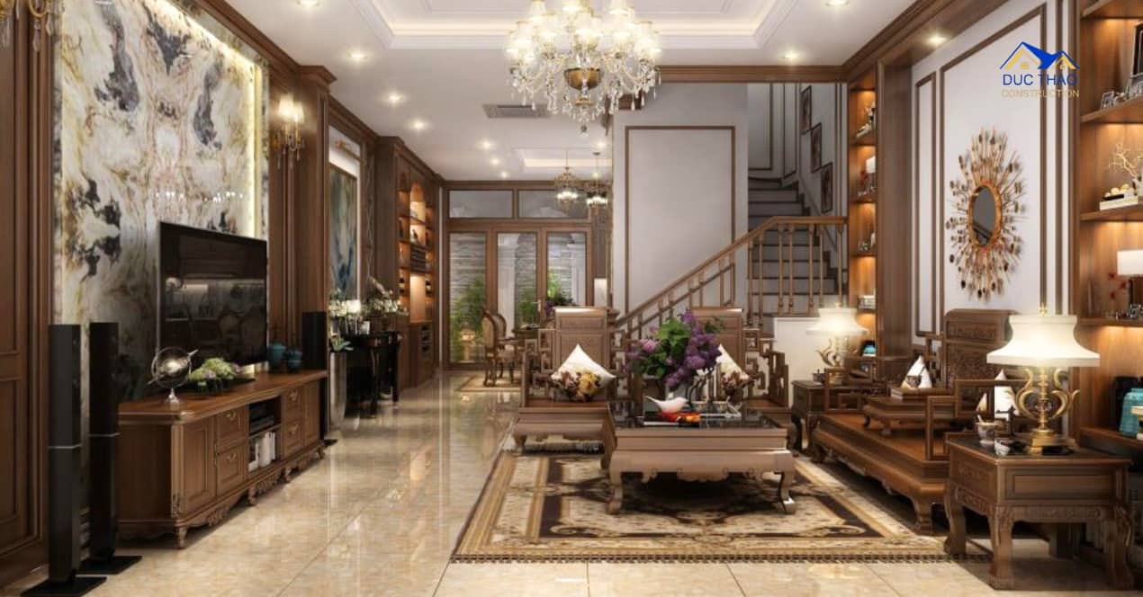 Phòng khách là trung tâm của ngôi nhà, được thiết kế sao cho rộng rãi và thoáng đảm bảo không gian sống chung và giao tiếp gia đình. Các vật liệu hiện đại như kính, thép và gỗ được sử dụng để tạo ra một không gian sang trọng và đẳng cấp.