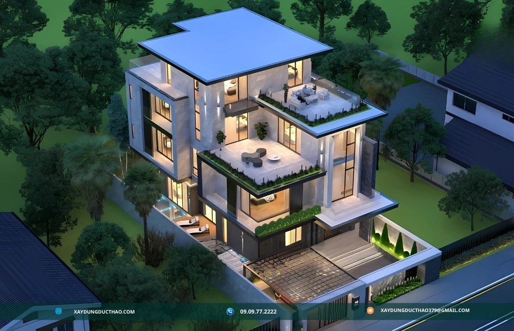 Dự án biệt thự 3 tầng do Công ty xây dựng Đức Thảo thi công tại Phan Thiết là một minh chứng rõ nét cho sự kết hợp hài hòa giữa kiến trúc hiện đại và không gian xanh. Ngôi biệt thự được thiết kế tối ưu công năng sử dụng, đồng thời đảm bảo yếu tố thẩm mỹ và sự tiện nghi cho mọi thành viên trong gia đình.