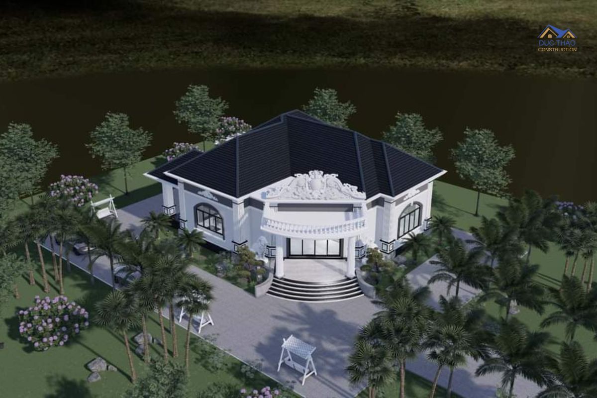 Căn biệt thự mang vẻ đẹp trang nhã, kiên cố và vững chãi nhờ vào hệ thống trụ cột khỏe khoắn cùng hệ mái thái. Cửa kính trong suốt kết hợp khung nhôm xingfa gợi lên cảm giác gần gũi, hài hòa cùng với thiên nhiên. Cảnh quan sân vườn thoáng mát đã giúp không gian sống luôn trong lành và mát mẻ. Từ đó đem đến bầu không khí tươi mới cho tất cả các thành viên trong gia đình khi sinh sống tại đây.