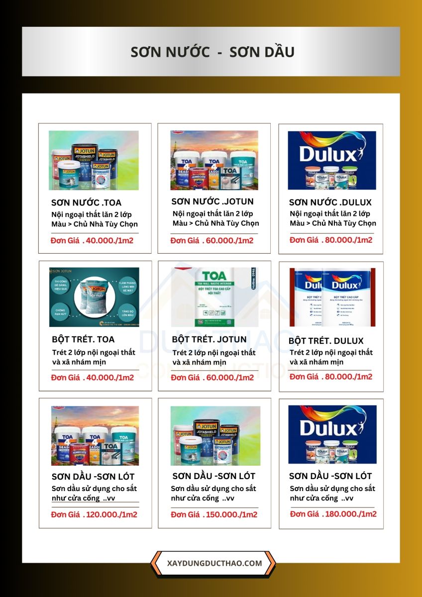 Dù cung cấp dịch vụ chất lượng cao, Công ty Đức Thảo vẫn giữ giá cả cạnh tranh so với thị trường. Công ty hiểu rằng, xây dựng một ngôi nhà là một khoản đầu tư lớn, vì vậy luôn nỗ lực mang đến dịch vụ tốt nhất với mức giá hợp lý nhất cho khách hàng.