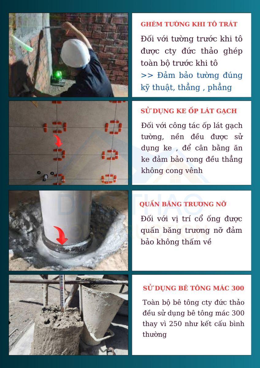 Công ty Đức Thảo cam kết bảo hành cho mọi công trình xây dựng trong thời gian dài. Chính sách bảo hành minh bạch sẽ giúp bạn yên tâm về chất lượng công trình. Nếu có bất kỳ vấn đề gì phát sinh, đội ngũ của công ty sẽ nhanh chóng xử lý và khắc phục để đảm bảo quyền lợi cho khách hàng.