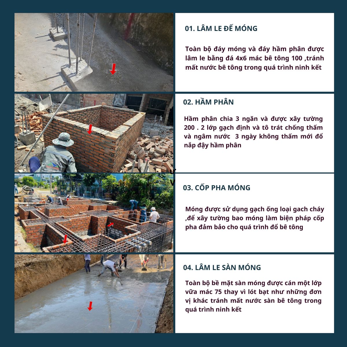 5. Thi công từng giai đoạn: Triển khai thi công từ phần móng, khung nhà đến hoàn thiện nội – ngoại thất.