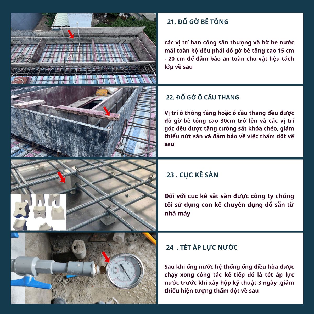6. Nghiệm thu – bàn giao – bảo hành: Nghiệm thu từng hạng mục, bàn giao đúng tiến độ, bảo hành kết cấu 5 năm – hoàn thiện 1 năm.