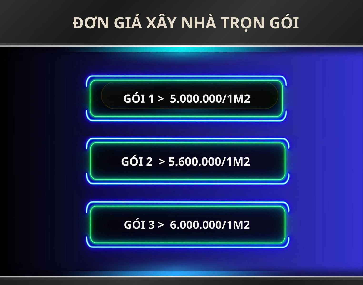 Chi phí xây dựng trọn gói phụ thuộc rất lớn vào chất lượng vật liệu và thiết bị hoàn thiện mà gia chủ lựa chọn. Các đơn vị xây nhà trọn gói thường chia thành nhiều gói như: trung bình, khá, cao cấp… Mỗi gói sẽ khác nhau ở chủng loại sơn, gạch, thiết bị vệ sinh, hệ thống điện nước, cửa, đèn… Nếu bạn chọn vật tư cao cấp hoặc yêu cầu tùy biến theo sở thích riêng, giá trọn gói có thể tăng lên đáng kể so với mức cơ bản.